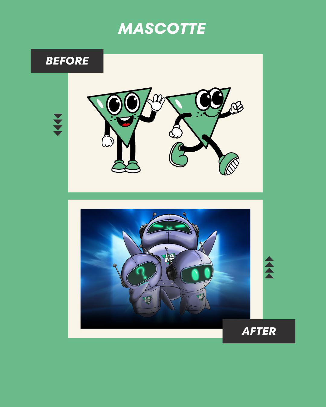 L’objectif était de passer d’un simple symbole illustré à un véritable personnage, pensé comme une mascotte robotique, avec une identité propre et un rôle central dans la communication du collectif.